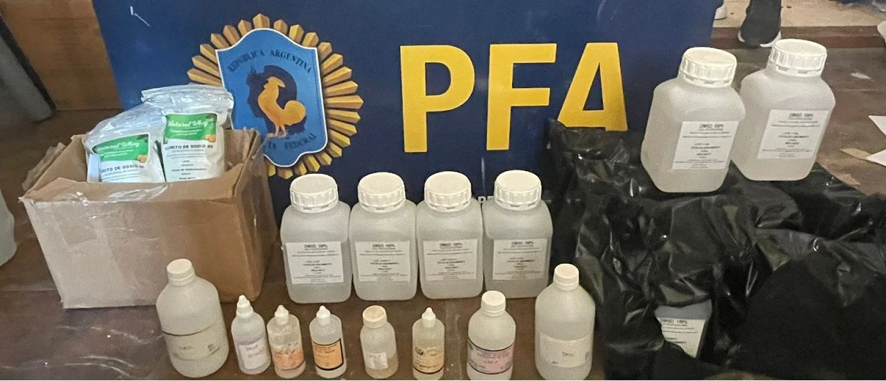 - En una sucesión de operativos realizados este jueves, la Policía Federal encontró dióxido de cloro en 13 domicilios.