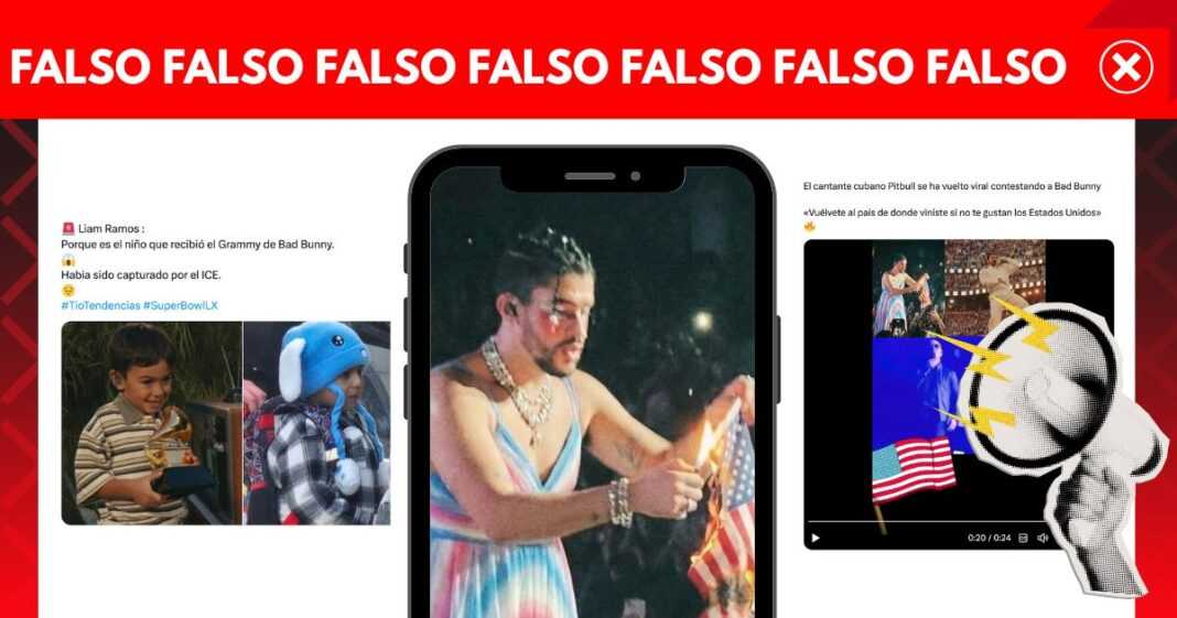 El artista puertorriqueño Bad Bunny presentó su show de medio tiempo en el Super Bowl LX, el pasado 8 de febrero, pero alrededor de este evento se han difundido contenidos desinformantes sobre los invitados y las acciones del cantante durante la presentación.