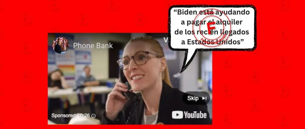 “Biden está ayudando a pagar el alquiler de los recién llegados a Estados Unidos”, dice la supuesta empleada de la campaña. Luego, el video se enfoca en un guión que la trabajadora de la campaña está leyendo, que dice en parte, “no digas inmigrantes”.