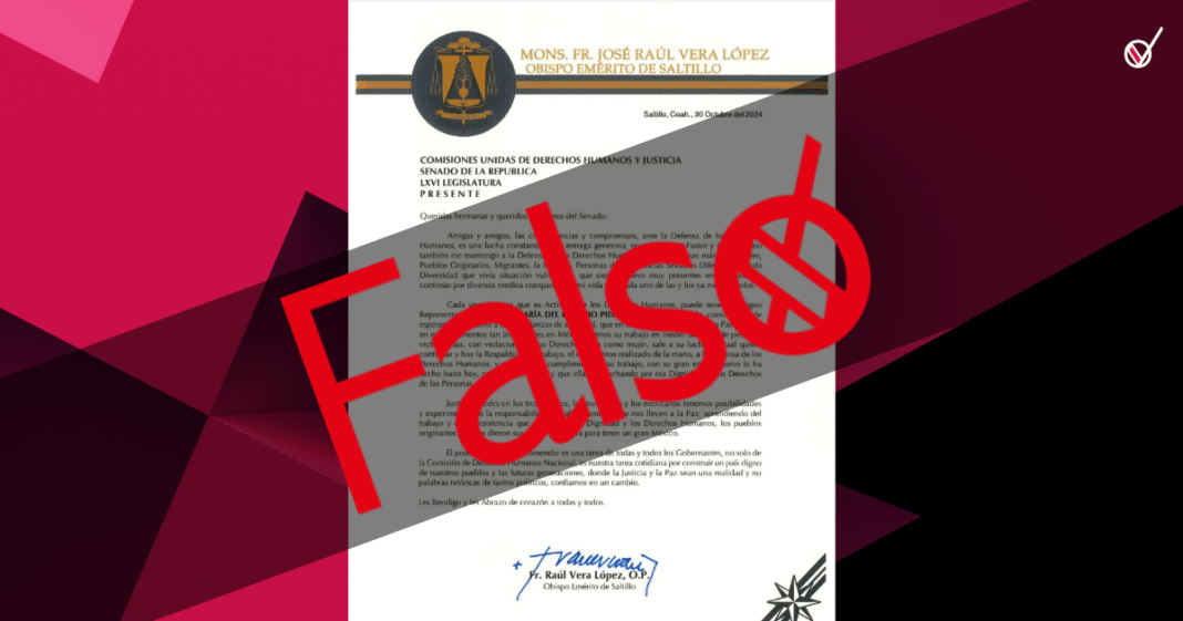 Después de que se popularizara una carta en la cual supuestamente el obispo emérito de Saltillo, José Raúl Vera López, apoya la candidatura de Rosario Piedra Ibarra para reelegirse como presidenta de la Comisión Nacional de Derechos Humanos (CNDH); el eclesástico indicó que la misiva es falsa.