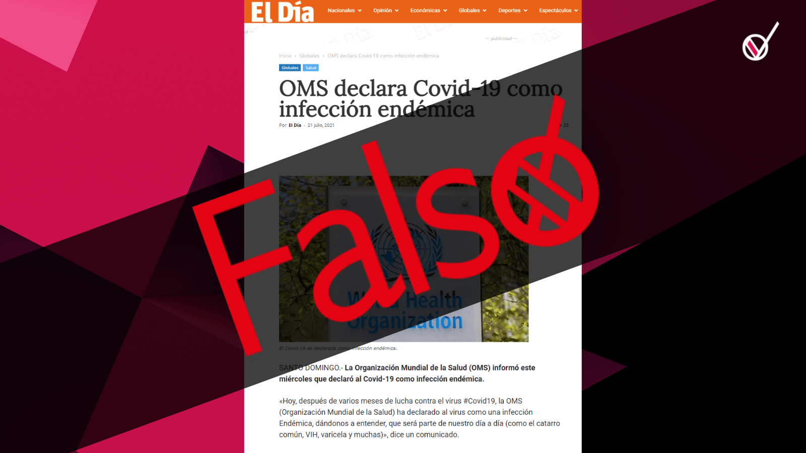 En República Dominicana, el portal El Día, replicó este mensaje en donde afirma que la OMS aconsejó en el “comunicado” mejorar la calidad de vida, pero en ningún momento el reporte no es confirmado.