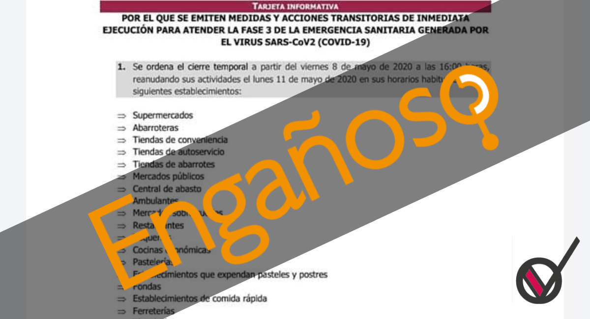 El documento que circula en redes sociales en el que se informa el cierre temporal de comercios, restaurantes, pastelerías, entre otros establecimientos es ENGAÑOSO.