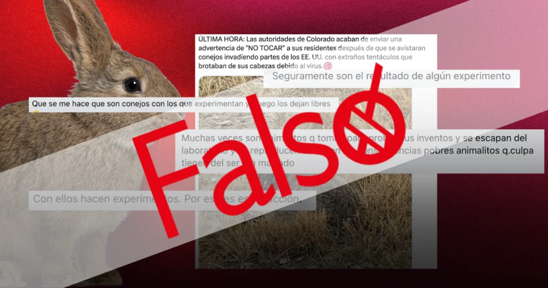 En redes sociales se popularizaron imágenes de conejos con protuberancias negras similares a cuernos o tentáculos que salen de sus cabezas. Las imágenes circularon en grupos y páginas que suelen compartir desinformación conspirativa para asegurar que se trataba de conejos mutantes.