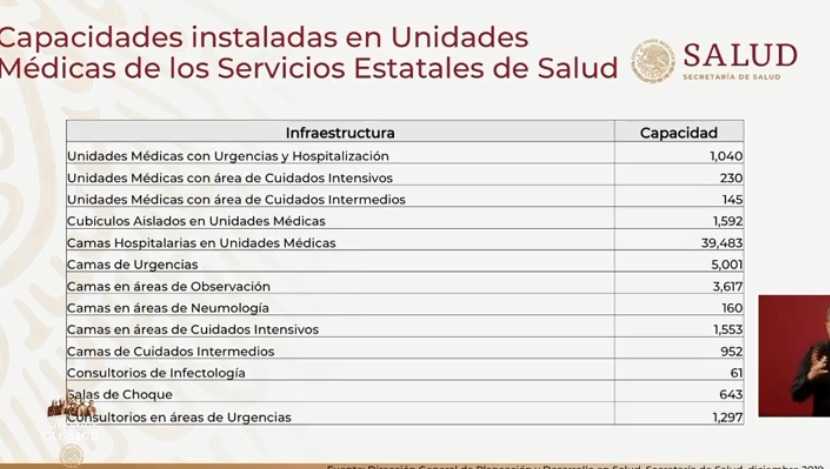 - 39,483 camas hospitalarias en unidades médicas.