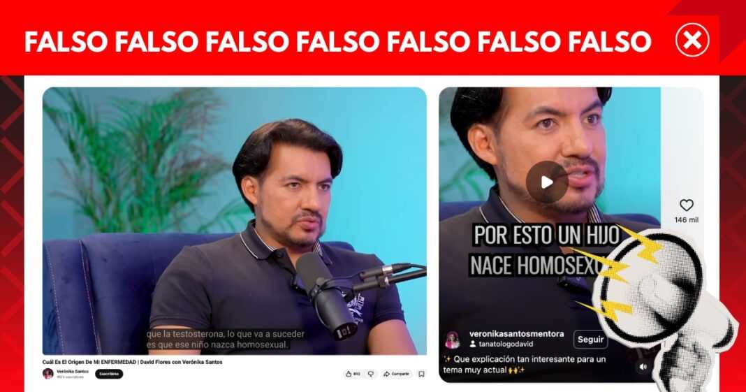 «Y aquí viene la homosexualidad que está demostrada en la UNAM. De la semana 5 a la semana 8 es un cerebro totipotencial. Es un cerebro de mujer, pero de la semana 8 a la semana 12, como hay un cromosoma Y, ahí empieza la mamá a inyectar la testosterona para darle toda la función de un varón. Pero si la mamá está sometida a estrés, está sometida a presión y vive un evento que marca la vida, entra una hormona que se llama el cortisol, la hormona del estrés, y el cortisol y la testosterona es como el agua y el aceite. No se llevan. Entonces, si una mujer está estresada entre la semana 8 y la semana 12 y aparece el cortisol más que la testosterona, lo que va a suceder es que ese niño nazca homosexual. Esto está demostrado ya», afirma David Flores en el episodio titulado ‘Cuál Es El Origen De Mi ENFERMEDAD’.