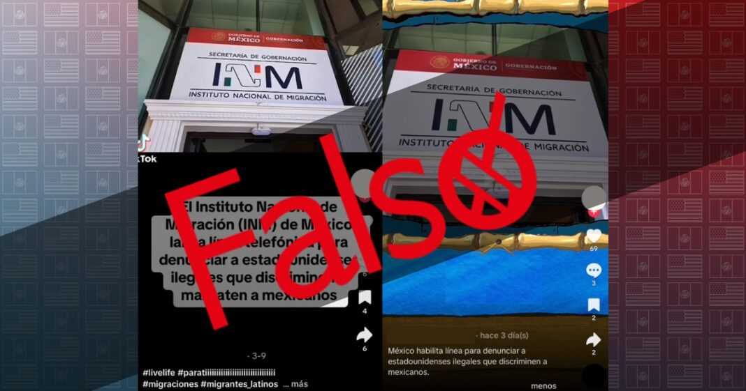- En redes sociales circula que el Instituto Nacional de Migración lanzó una línea telefónica para denunciar estadounidenses que se encuentran en México de forma irregular, pero esto es falso.