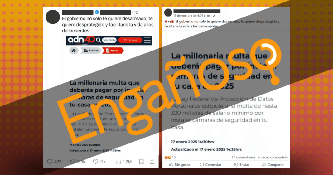 En redes sociales y medios de comunicación se asegura que a partir de 2025 las autoridades impondrán multas de hasta 18 millones de pesos para quienes instalen cámaras de seguridad en sus residencias, pero esto es engañoso.
