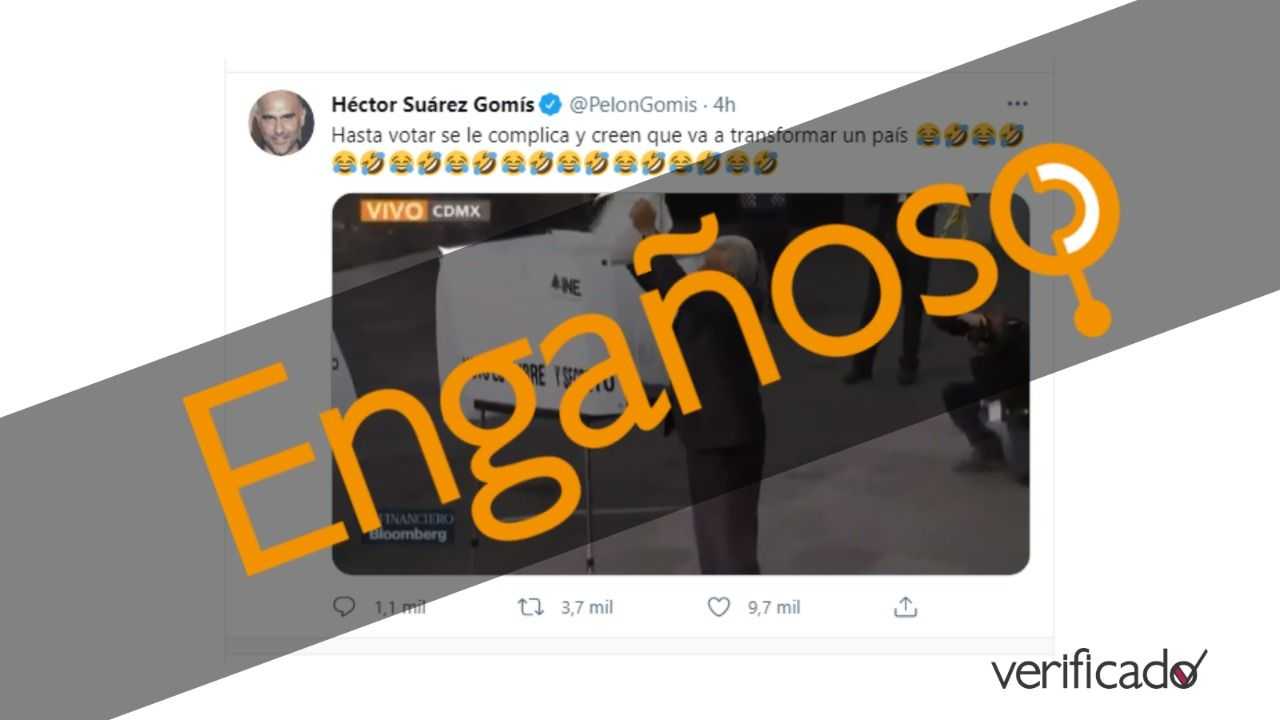 El actor Héctor Suárez Gomís compartió a través de sus redes sociales una filmación en donde se presencia al Presidente Andrés M. López Obrador teniendo dificultades en la casilla. Sin embargo, dicho video fue tomado en las elecciones del 2018.