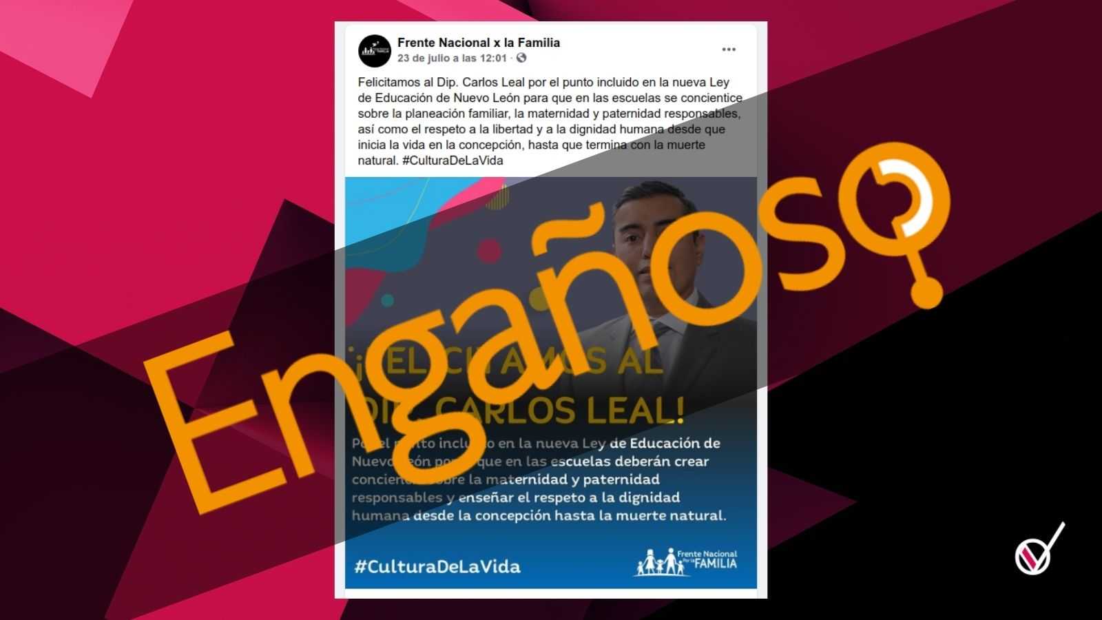 En el 2020, el diputado Juan Carlos Leal (señalado en anteriores ocasiones por realizar comentarios homofóbicos, misóginos y antiderechos), propuso una reforma a la Ley de Educación del Estado de Nuevo León en la que se promueve el “respeto absoluto a la dignidad humana y la cultura de la vida desde el momento de la concepción hasta la muerte natural”.