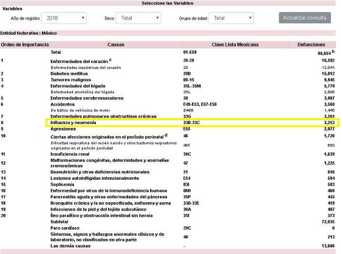 Ahora bien, en el análisis de los últimos datos del INEGI (datos de 2018) se registró la muerte de 28 mil 332 personas por influenza y neumonía en todo el territorio mexicano.