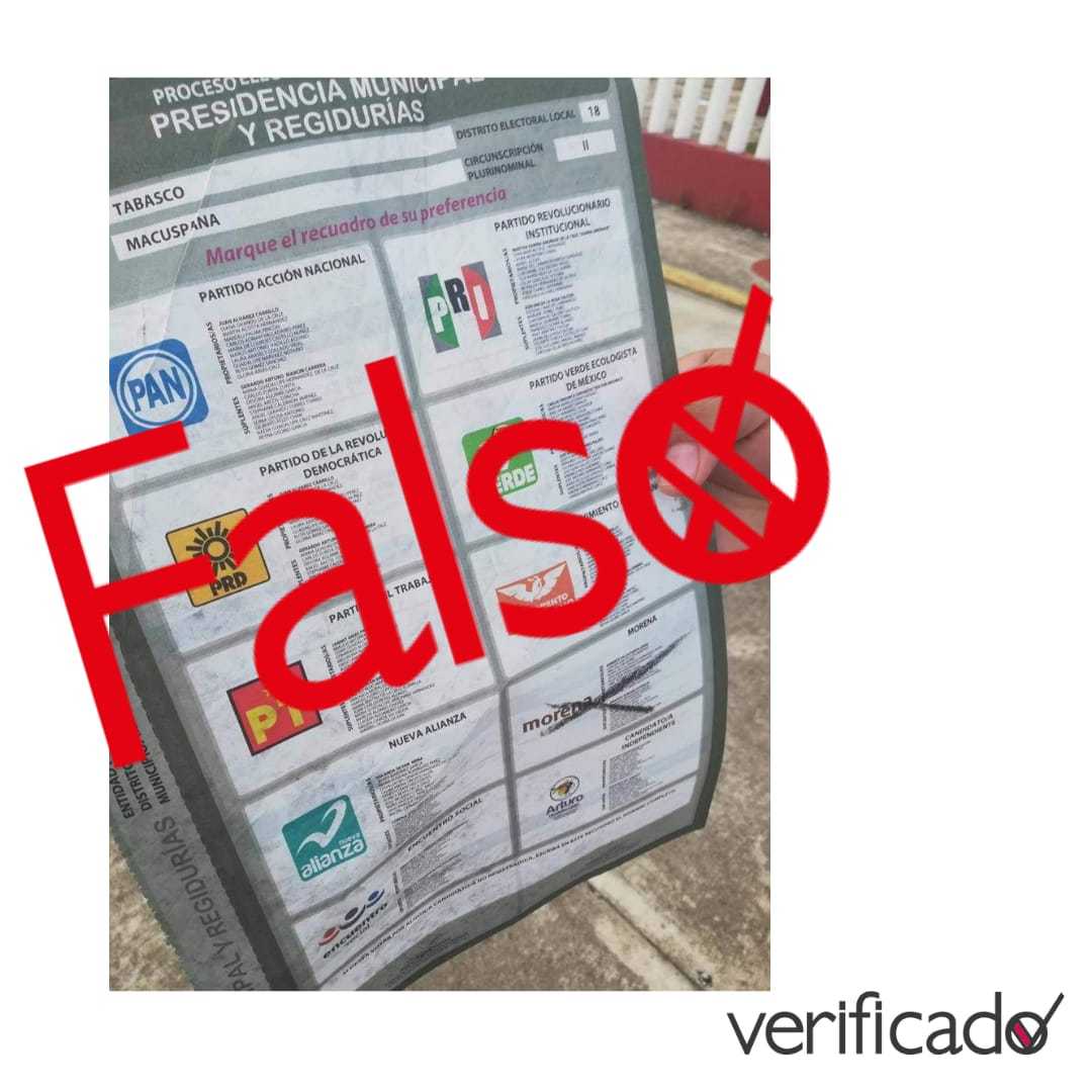 En las presentes elecciones circula en redes sociales una boleta que fue arrojada en las calles de Macuspana, Tabasco para la votación de presidentes municipales y regidurías, pero dicho talón es falso.