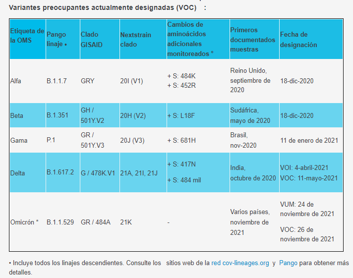 Y aunque aún se analiza a profundidad las características de Ómicron, las variantes clasificadas como de preocupación (VOC) se relacionan con importancia en la salud pública mundial por aumento en la transmisibilidad, cambios perjudiciales en la epidemiología COVID-19, aumento en virulencia, diferencias en la presentación clínica de la enfermedad o disminución de eficacia en las medidas sociales y de salud pública para diagnósticos, vacunas o terapias disponibles (3).