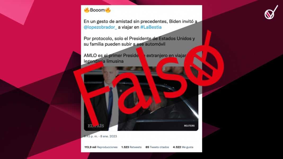 Sin embargo, tales afirmaciones son falsas, pues otros líderes extranjeros como el expresidente de Rusia, Dmitry Medvedev, el exprimer ministro de Japón, Shinzo Abe y el presidente de Francia, Emmanuel Macron, también se han trasladado en el vehículo presidencial estadounidense.