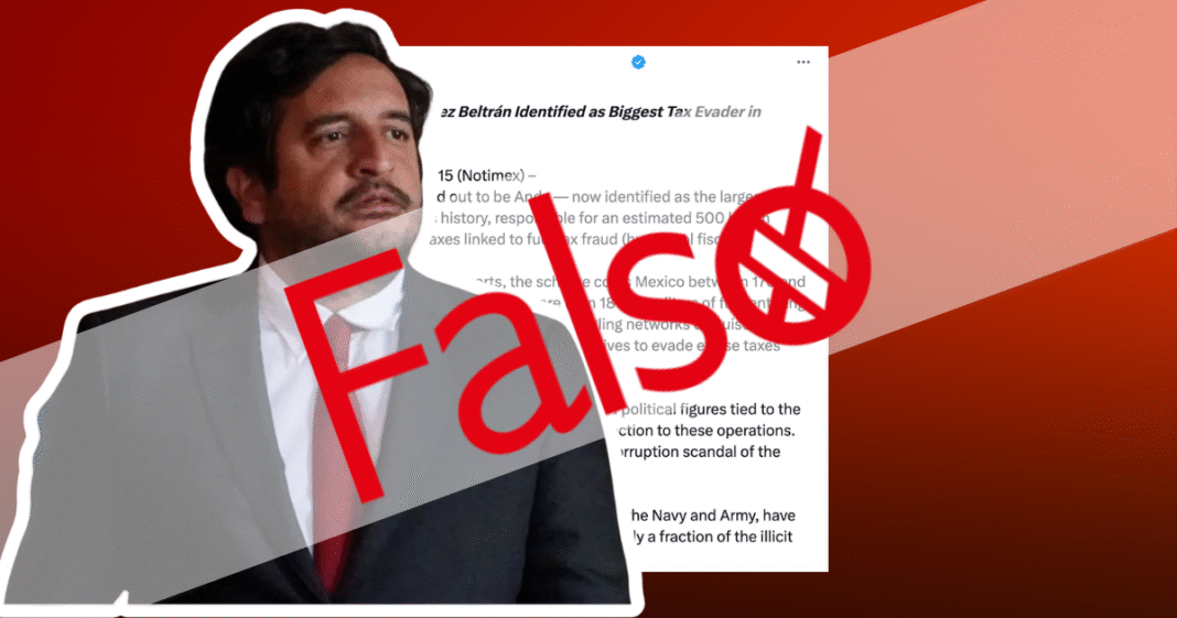 Particularmente, en X una cuenta que se promociona como un “Centro Internacional de investigación en contra de los cárteles y criminales mexicanos”, hizo una publicación asegurando que Andrés López Beltrán, —hijo del expresidente Andrés Manuel López Obrador— evade impuestos mediante el huachicol fiscal.