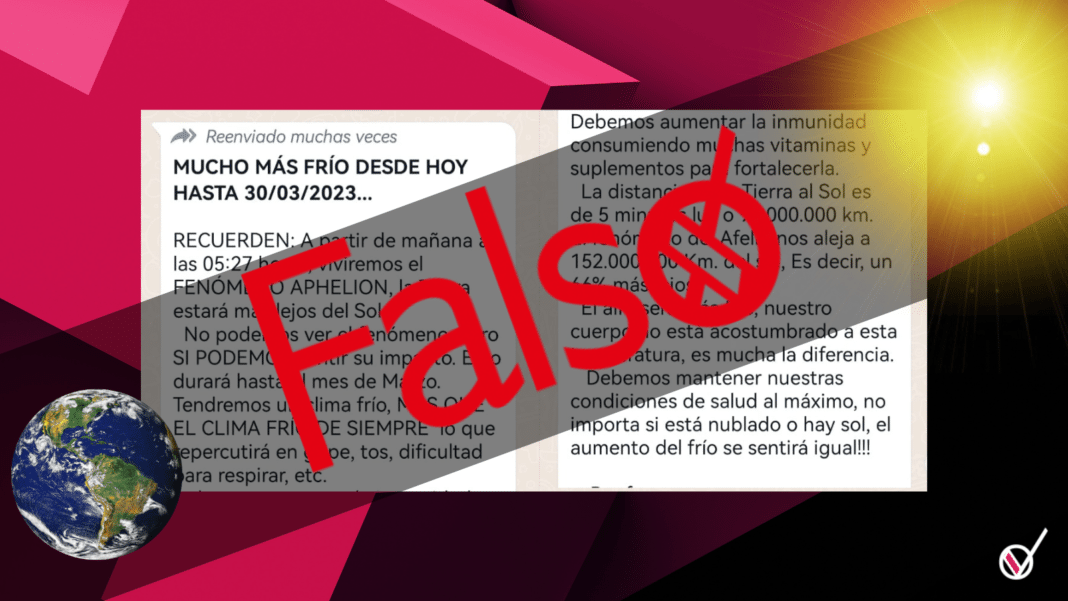 Además, la distancia entre el Sol y la Tierra durante el también llamado Afelio, no es lo suficientemente grande como para producir ese “clima frío” o los efectos perjudiciales para la salud descritos en la cadena.