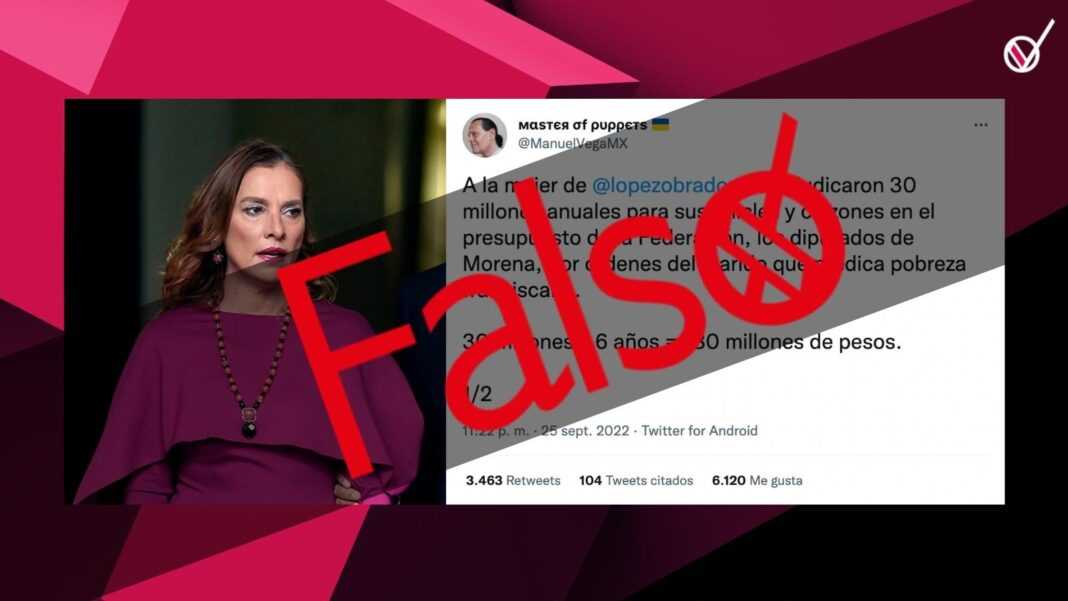 En Twitter, se popularizó una publicación donde se afirma que Beatriz Gutiérrez Müller recibe 30 millones de pesos anualmente justificados en el Presupuesto de la Federación, por lo que al terminar el sexenio, la escritora y esposa del presidente, Andrés Manuel López Obrador, estaría recibiendo 180 millones de pesos, sin embargo esto es falso.