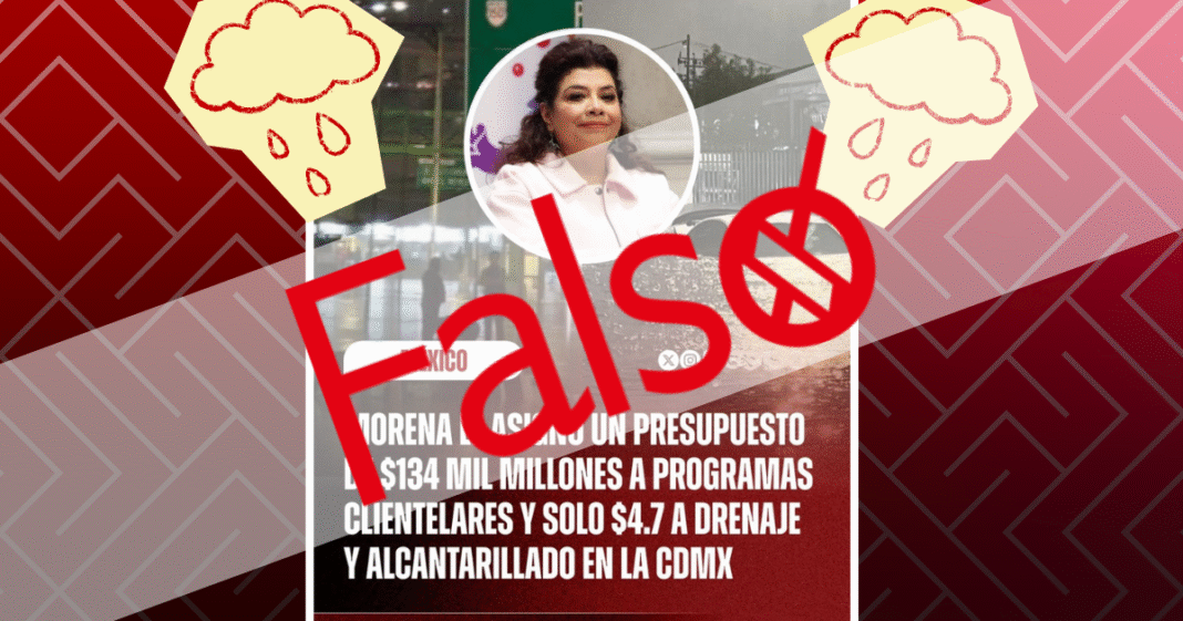 Tras las fuertes lluvias registradas en la Ciudad de México en las se reportaron precipitaciones promedio de 24.8 milímetros e inundaciones en todas las alcaldías, surgió una narrativa en redes sociales que afirma que al drenaje de la ciudad se le destinaron menos de 5 mil millones de pesos y a los programas sociales más de 134 mil millones. Pero esto es falso.