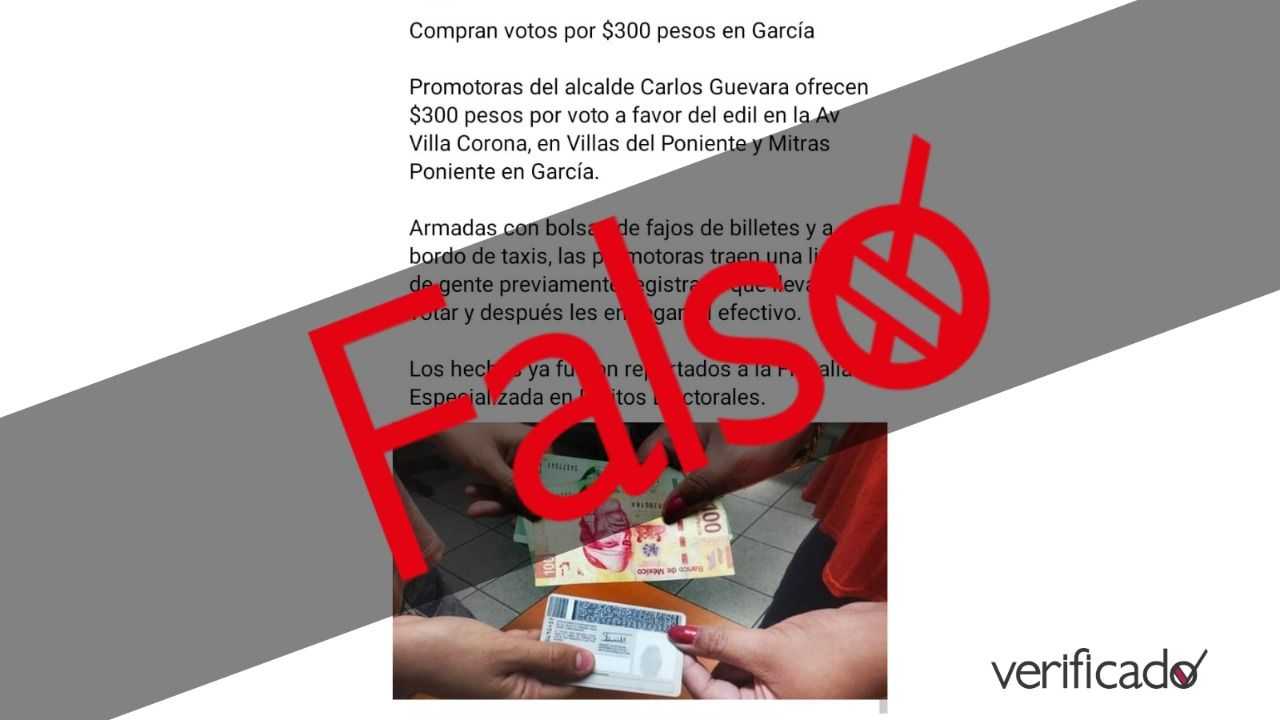 Es falso que ocurriera la compra de votos por el equipo promotor del alcalde Carlos Guevara, en las colonias Villas del Poniente y Mitras Poniente en el municipio de García, Nuevo León.