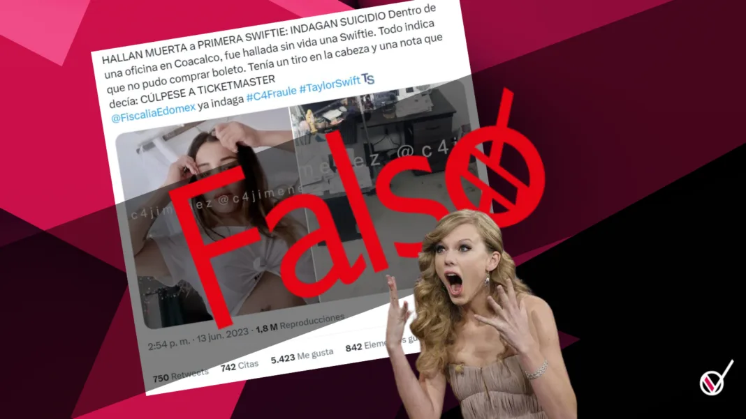 Dicha publicación asegura que una «Swiftie» (nombre con el que se conoce a las fanáticas de Taylor Swift) fue hallada sin vida dentro de una oficina en el municipio de Coacalco, en el Estado de México, presuntamente por no poder adquirir un boleto durante la preventa del primer concierto del tour.