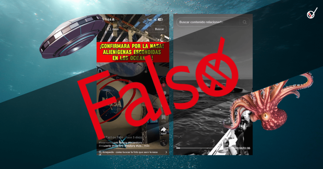 En redes sociales, usuarios han viralizado contenido en el que aseguran que la Administración Nacional de Aeronáutica y el Espacio (NASA en sus siglas en inglés) confirmó la existencia de «aliens» y objetos voladores no identificados, y que además, se encuentran dentro del océano, esto es falso.