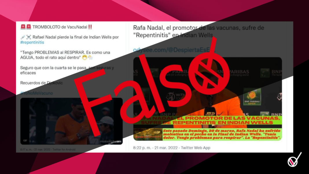La desinformación surgió luego de que Rafael Nadal tuviera problemas para respirar durante su partido contra Taylor Fritz, y perdiera durante la final del Indian Wells.