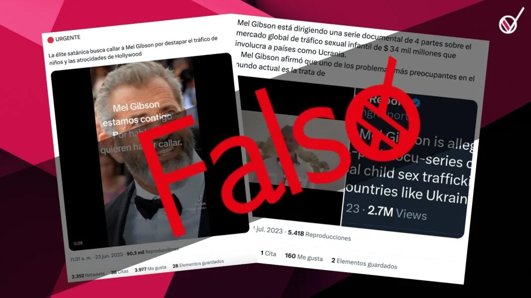 «Mel Gibson está dirigiendo una serie documental de 4 partes sobre el mercado global de tráfico sexual infantil de $34 mil millones que involucra a países como Ucrania. Mel Gibson afirmó que uno de los problemas más preocupantes en el mundo actual es la trata de personas, especialmente la trata de niños», se lee en diversas publicaciones de Facebook, Twitter y Tik Tok.