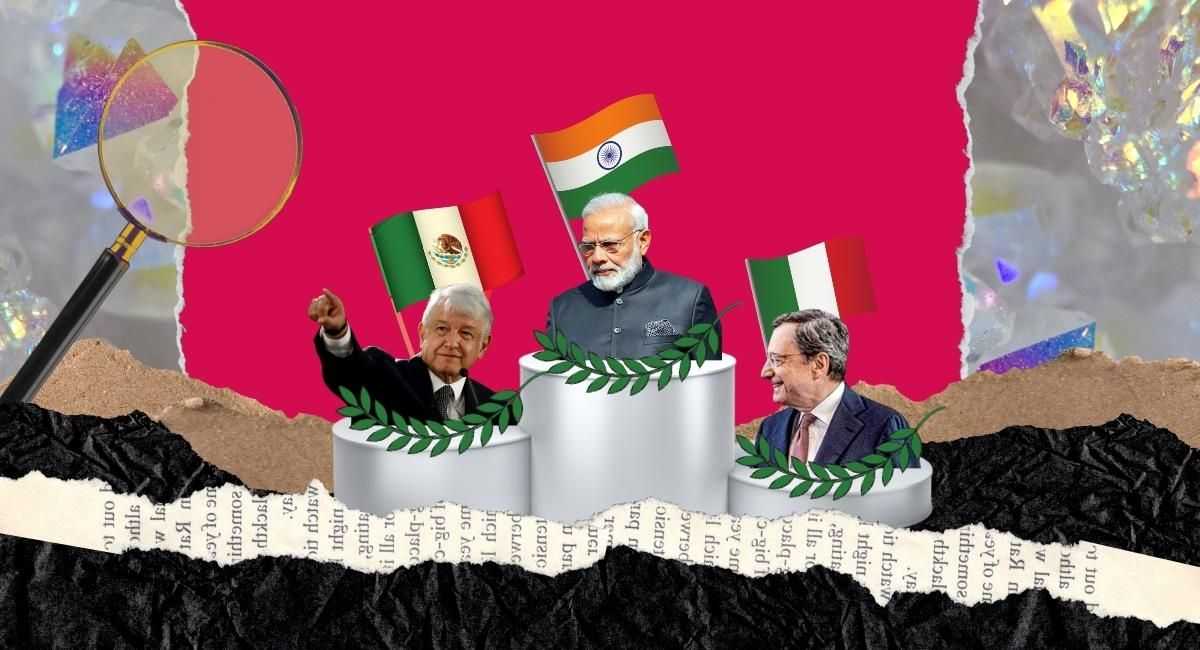 El medio de comunicación referido colocó en su portada del 25 de octubre de 2021 una gráfica de barras titulada “Popularidad de los líderes mundiales”, en la que coloca a AMLO en el segundo puesto de aprobación -con 65%-, según la encuesta de Morning Consult, solo detrás del primer ministro, Narendra Modi.
