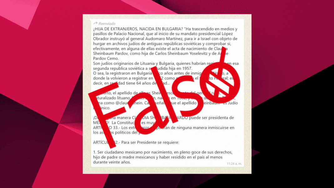 En WhatsApp, circula la noticia de que la ex jefa de gobierno, Claudia Sheinbaum nació en Bulgaria y por ello, no puede ser candidata a la presidencia del país, pero este mensaje es falso y ya ha sido verificado por diversos medios de comunicación.