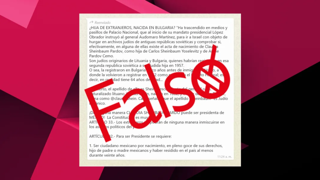 Esta cadena y noticia falsa ha circulado desde 2022 cuando Sheinbaum Pardo aún era jefa de gobierno pero con ciertos cambios en el mensaje, «La regencia de CDMX no puede estar representada por Claudia SheIn Baun, por haber nacido en Europa, hija de Lituanos, y quién está registrada en Israel, y después registrada en México, tampoco puede ser candidata a la presidencia», esta información tambien fue desmentida por medios como AFP Factual.