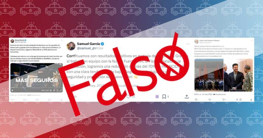 Después, el 27 de mayo, el mandatario empató la cifra con la que dio el secretario general de Gobierno, Javier Luis Navarro Velasco, quien días antes refirió que los homicidios en Nuevo León se «han reducido en un 80%».