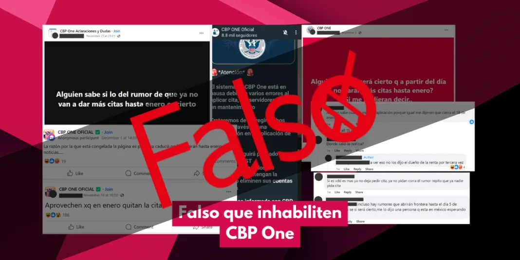 En Facebook, usuarios aseguran en grupos o comunidades de migrantes que la aplicación CBP One ha dejado de agendar citas durante el mes de diciembre debido a la temporada de fiestas, mientras que otras personas afirman que en enero la plataforma dejará de funcionar, esto es falso.