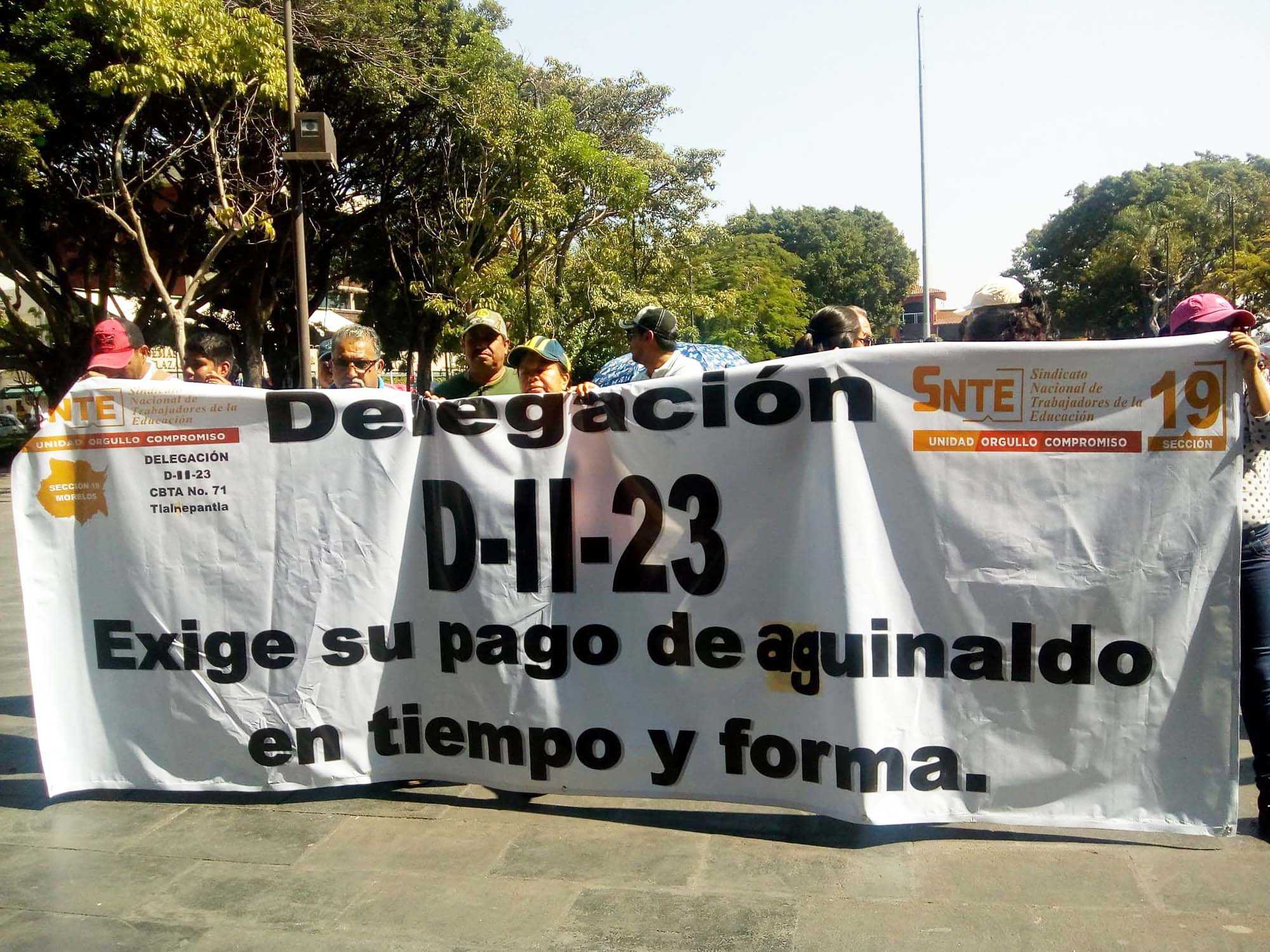 Por otro lado, en Hidalgo, la sección 15 del SNTE exigía el pago de aguinaldo y de bono para jubilados que no llegó a tiempo. Denunciaban que a los 15 mil 500 maestros jubilados no se les dio su bono anual y que tres mil docentes de educación media superior y superior faltaban de recibir el pago del aguinaldo.