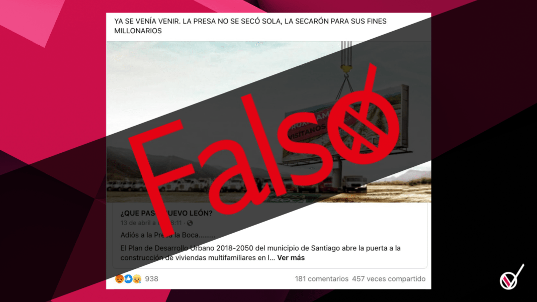 En redes sociales han estado circulando varias publicaciones asegurando que en la Presa de la Boca del estado de Nuevo León, se realizará la construcción de predios familiares; y si bien es cierto que una parte de la zona de La Boca se considera urbanizable, es falso que el Programa de Desarrollo Urbano avale construcciones en el interior de dicha presa.