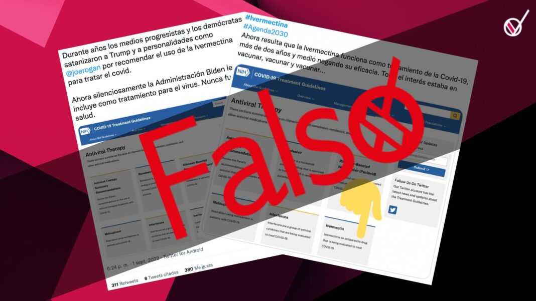 Con descripciones como «Ahora silenciosamente la Administración Biden le incluye como tratamiento para el virus» y «Ahora resulta que la Ivermectina funciona como tratamiento de la Covid-19, más de dos años y medio negando su eficacia», se difundieron publicaciones en redes sociales y grupos de mensajería instantánea como WhatsApp y Telegram, anunciando que la ivermectina ya ha sido aprobada por los Institutos Nacionales de la Salud de Estados Unidos para el tratamiento de pacientes con COVID-19.
