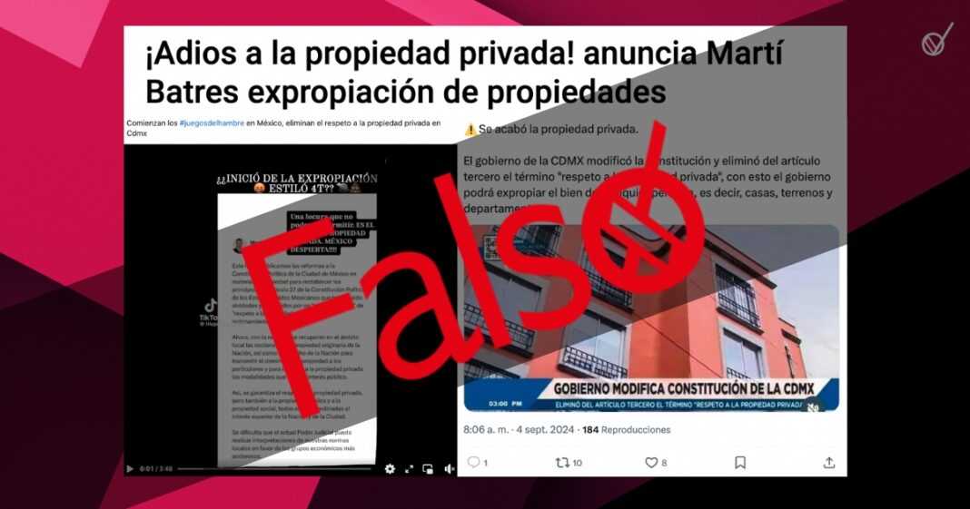Después de que el lunes 2 de septiembre, el jefe de Gobierno, Martí Batres, presentó el decreto por el que se reformó el artículo 3 de la Constitución de la CDMX, comenzaron a circular publicaciones que señalan que esta decisión supuestamente «elimina el derecho a la propiedad privada».