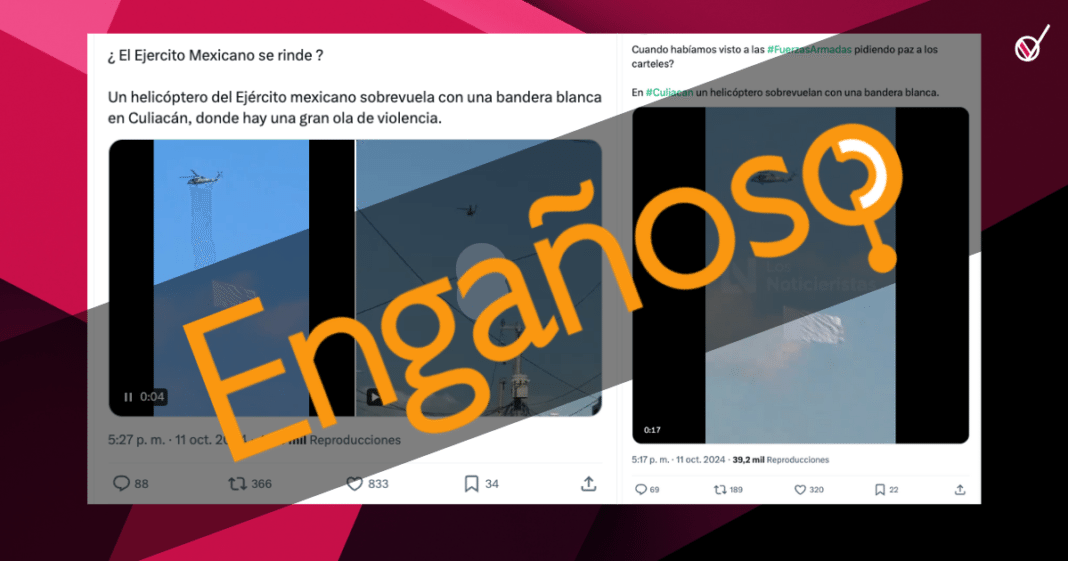 - El helicóptero que fue captado sobrevolando distintos puntos de Culiacán, Sinaloa levantó cuestionamientos acerca del mensaje que envía la bandera blanca, pues tanto usuarios de redes como algunos medios de comunicación aseguraron que el ejército estaba pidiendo paz a los cárteles.
