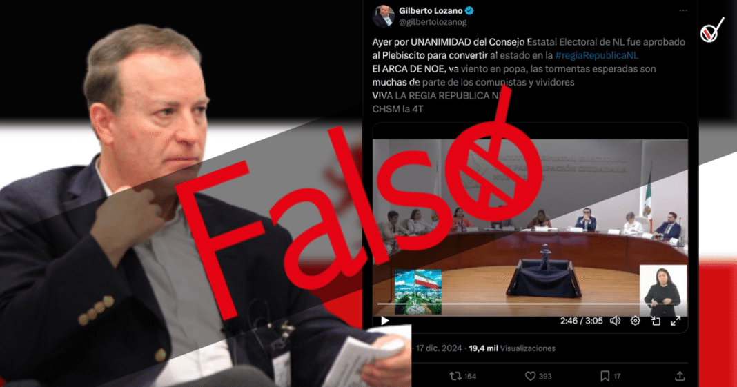 Gilberto Lozano González, fundador del Frente Nacional Anti-AMLO (FRENA), afirmó en sus redes sociales que el Instituto Electoral de Nuevo León avaló la consulta popular sobre si se debería “independizar” el estado de la federación, pero esto es falso.