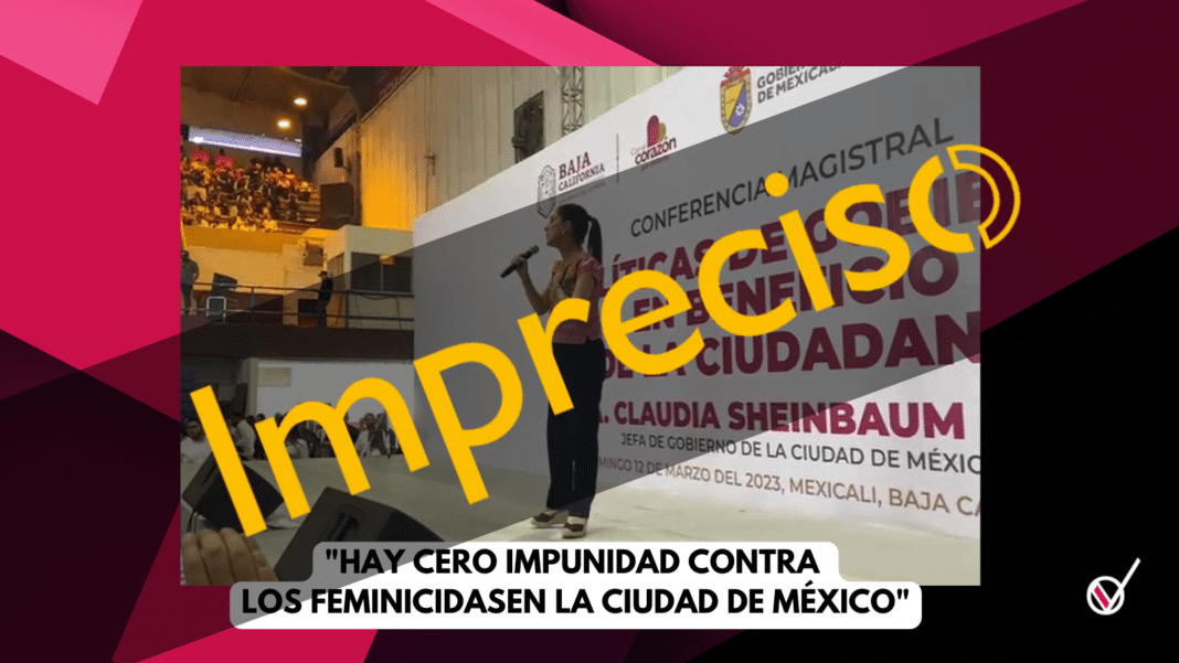 La jefa de gobierno de la Ciudad de México, Claudia Sheinbaum aseguró que la totalidad de los casos por feminicidio en la capital del país han sido sancionados, esto es impreciso.