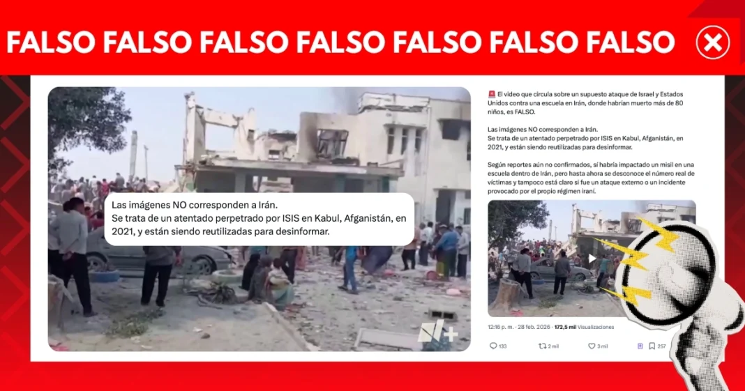 - Usuarios de redes sociales afirman que “el video que circula sobre un supuesto ataque de Israel y Estados Unidos contra una escuela en Irán es falso” y que en realidad “se trata de un atentado perpetrado por ISIS en Kabul, Afganistán, en 2021”.