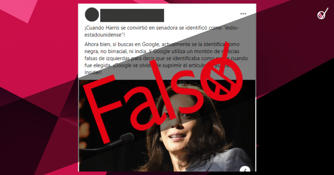 Esas publicaciones afirmaban que cuando Harris se convirtió en senadora en 2017, sólo se identificaba como de ascendencia india, y que sólo más tarde comenzó a identificarse como negra para obtener beneficios políticos. La afirmación fue desmentida entonces.