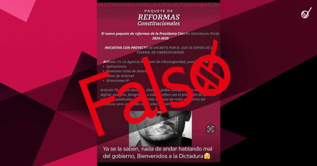 Incluso como parte de la desinformación, una publicación en TikTok afirma que Claudia Sheinbaum, presidenta electa propone crear una ley de ciberseguridad que limite el uso de internet y permita encarcelar a personas que se manifesten en contra del gobierno.