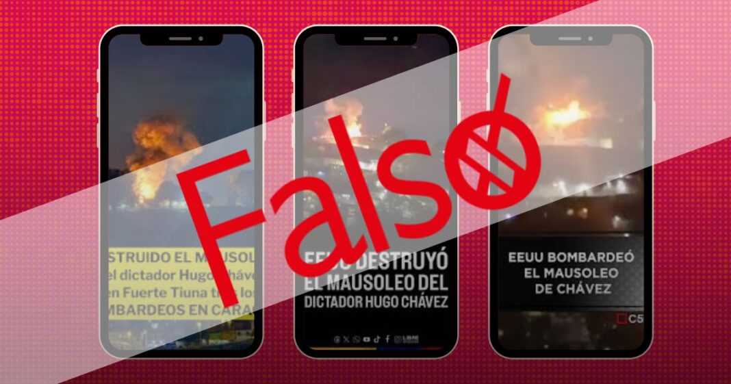 El Mausoleo de Hugo Chávez no fue destruido, muchas de las fotos y videos que circularon mostrando “escombros” del lugar resultaron ser en su mayoría, imágenes de Gaza o de ataques aéreos en Siria. Asimismo, la inteligencia artificial estuvo presente y dificultó que los usuarios pudieran distinguir la realidad de la ficción.