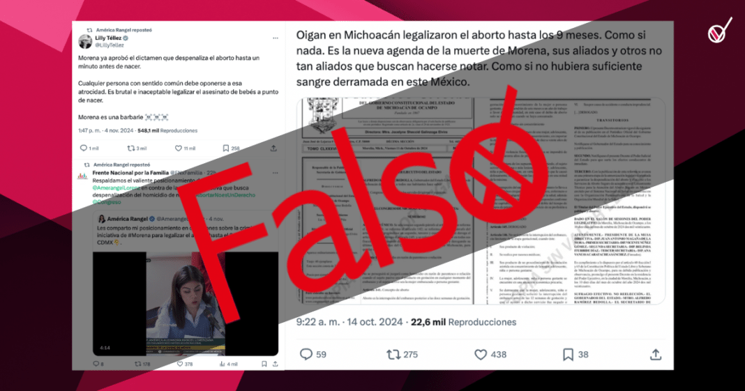 En redes sociales circulan publicaciones que anuncian que el Congreso de Michoacán legalizó el aborto hasta los nueve meses de gestación y que, en Ciudad de México, Morena presentó una iniciativa que también busca legalizar el aborto hasta los nueve meses.