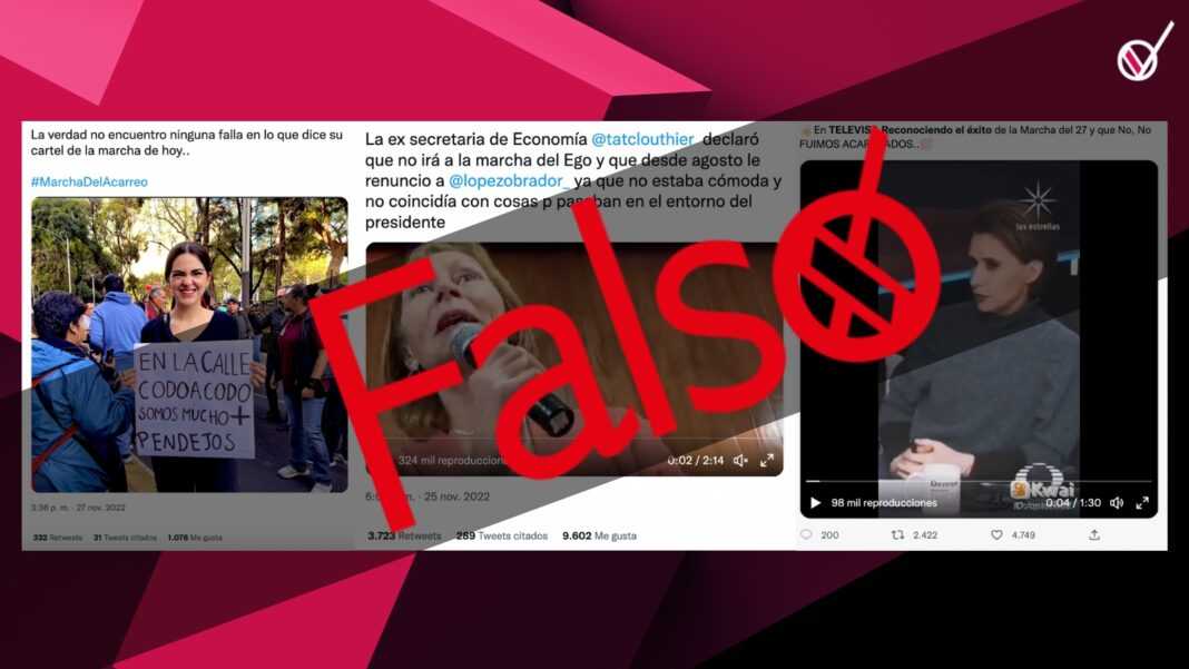 Usuarios de redes sociales afirman que la exsecretaria de Economía, Tatiana Clouthier, declaró que no iría a la «marcha del ego», en referencia al evento del 27 de noviembre que fue convocado por el presidente Andrés Manuel López Obrador, pero tal información es falsa.