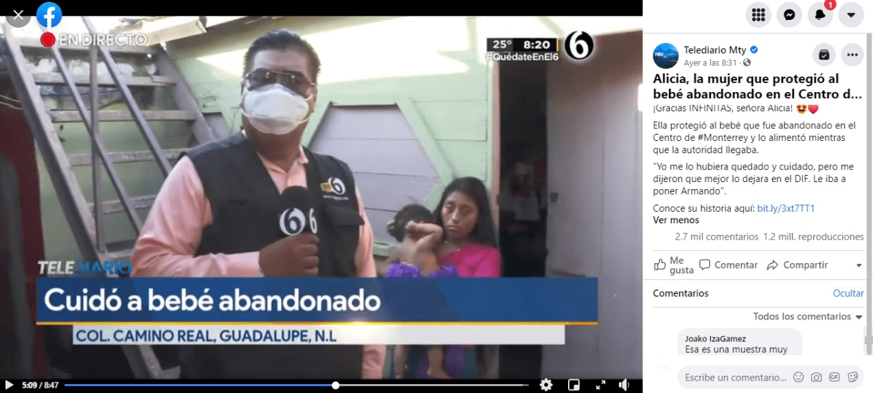 Hubo dos transmisiones que se compartieron en Facebook, una en ABC Noticias con más de 82 mil reproducciones y una más en Multimedios, en donde la cual tuvo más de 1.2 millones de reproducciones.