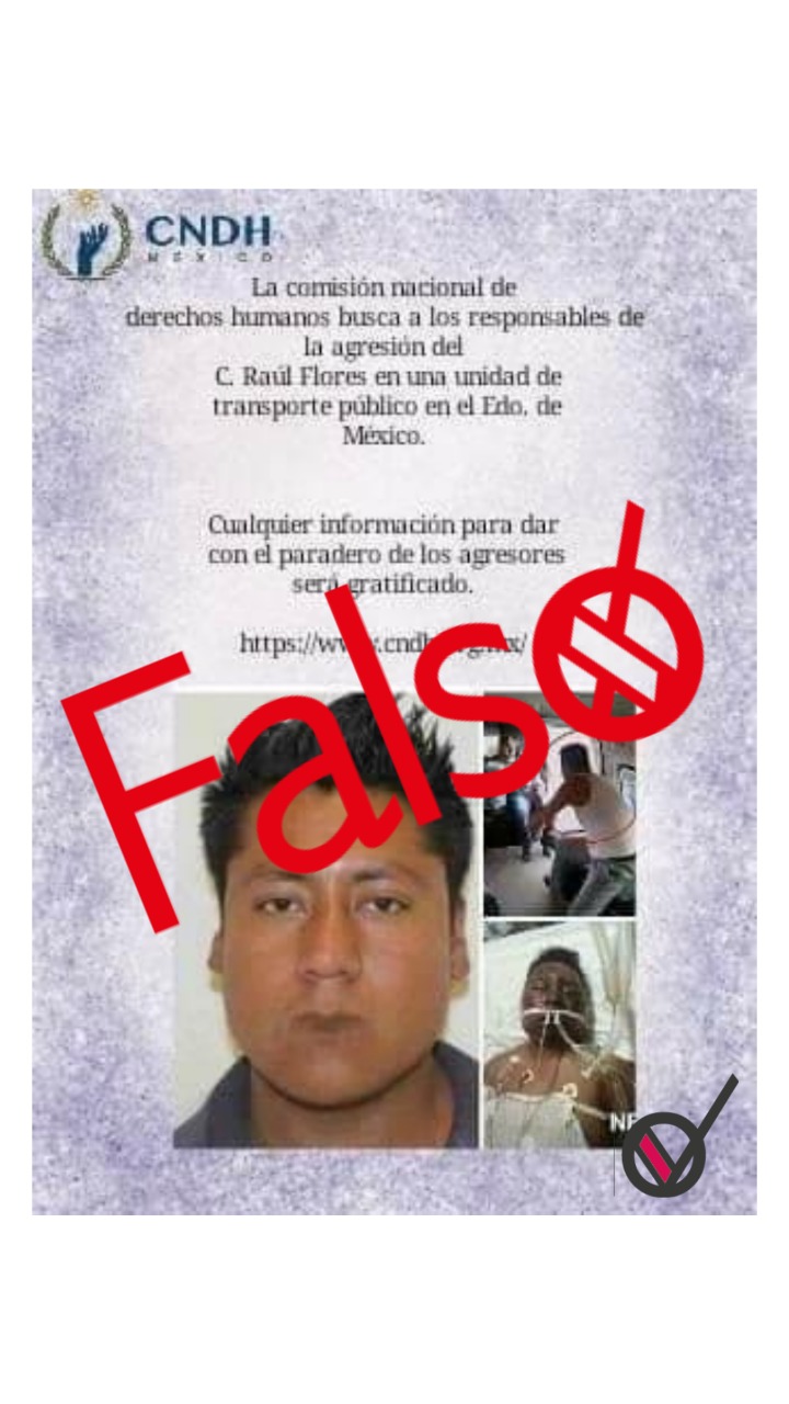 Es falso que la Comisión Nacional de Derechos Humanos (CNDH) busque a quienes agredieron a una persona en el transporte público del Estado de México como se dice en redes sociales.