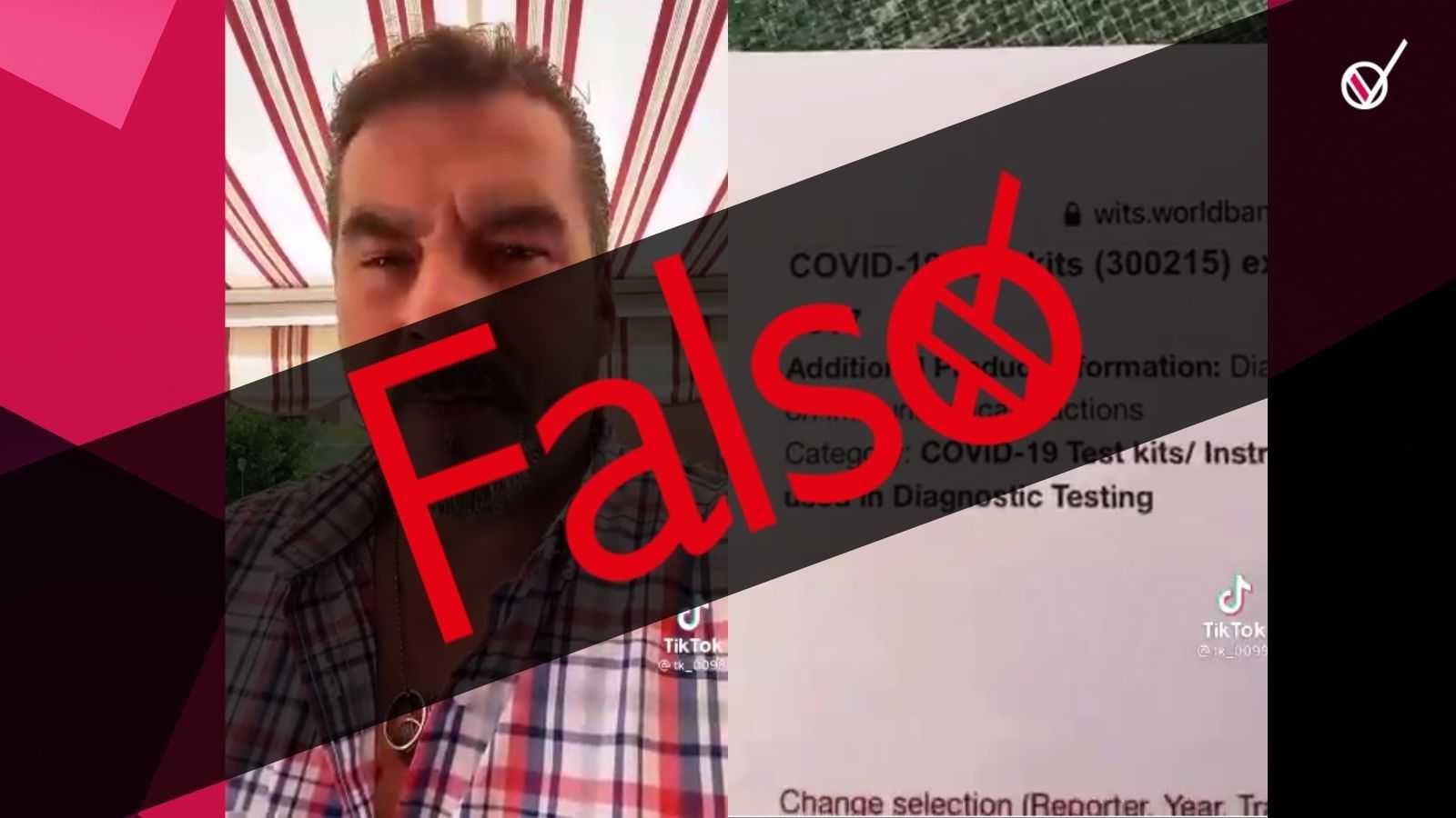 En redes sociales se viralizaron unos listados del programa informático World Integrated Trade Solution (WITS), iniciativa del Banco Mundial en conjunto con otras entidades, que mostraban la cantidad de implementos para diagnosticar el COVID-19 que habían sido exportados a distintos países desde 2017.