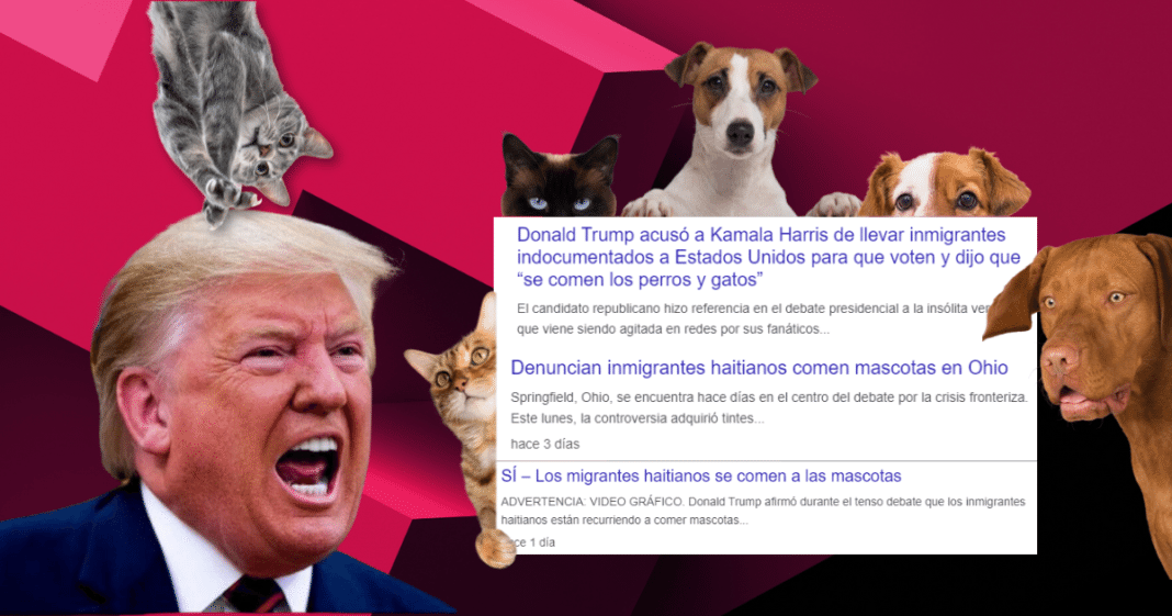 - El expresidente Donald Trump afirmó que en la ciudad de Springfield, en Ohio, “están comiendo los perros, las personas que vinieron, están comiendo los gatos” y “las mascotas de las personas que viven ahí» durante el debate presidencial del 10 de septiembre de 2024.