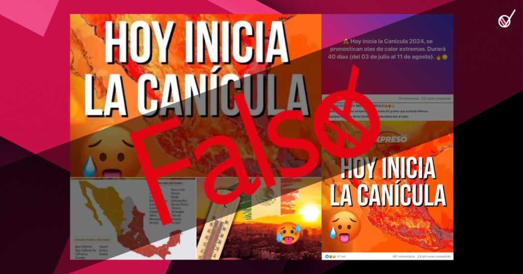 - En redes sociales circulan publicaciones que alertan sobre el inicio de la canícula, el «periodo más caluroso del año» que supuestamente durará hasta el próximo 11 de agosto.