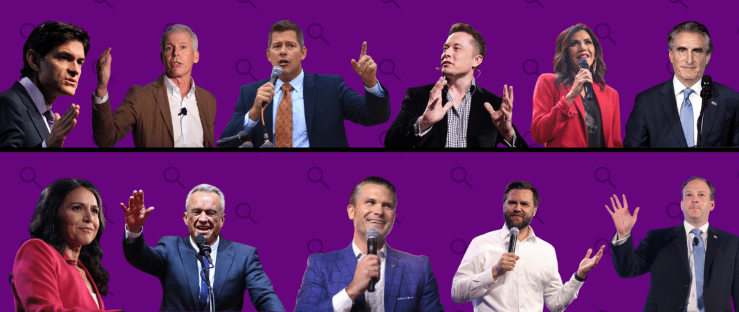 - Entre los encargados de la salud, se encuentran el antivacunas Robert F. Kennedy Jr. y Mehmet Oz (Dr. Oz), quienes difundieron desinformación sobre salud, el COVID-19 o supuestos remedios médicos.